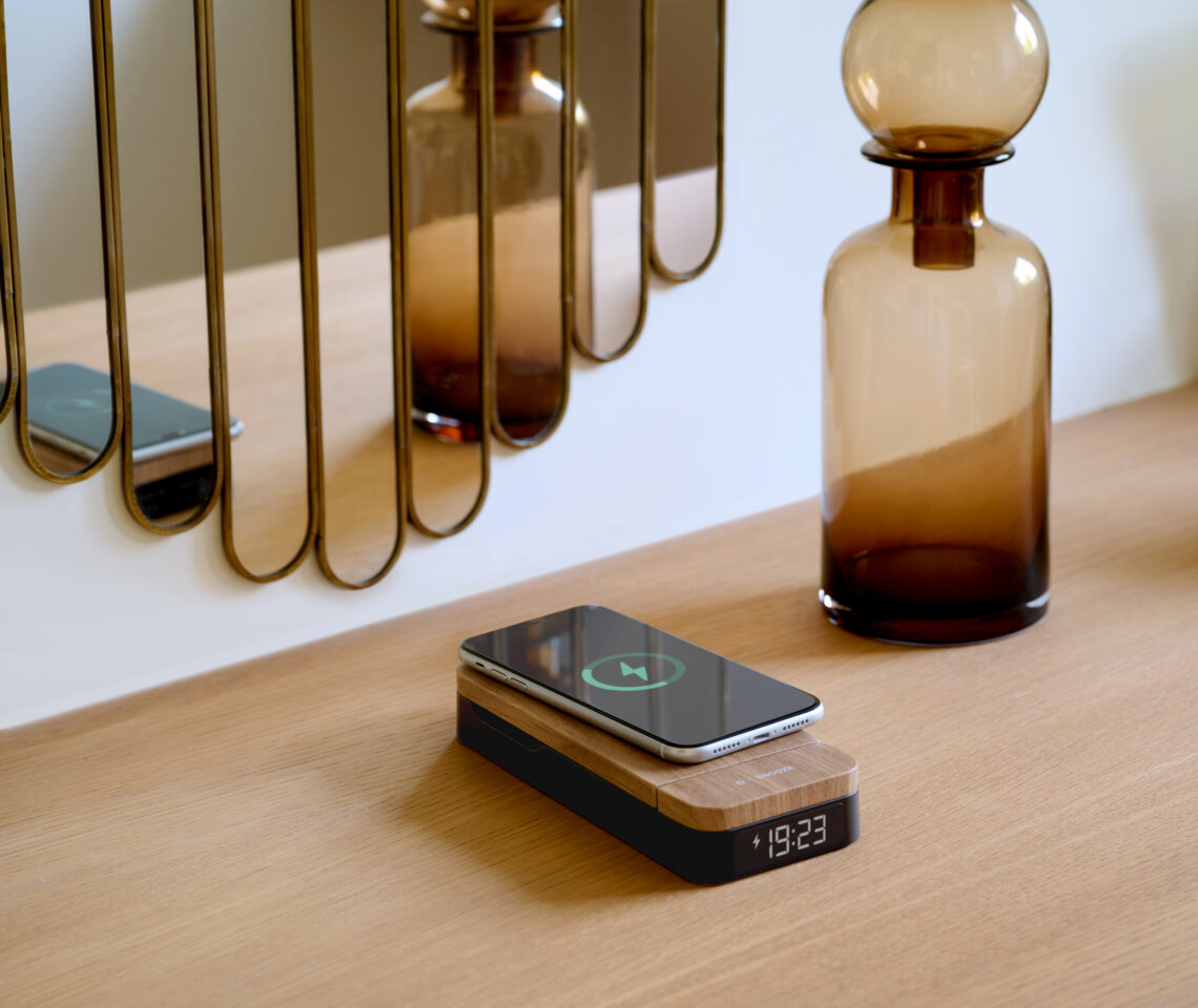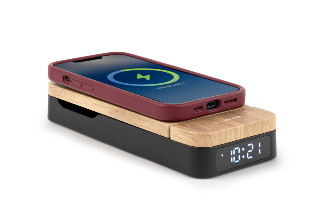 Wake up with energy! --Optimize your space with this foldable COSY alarm clock that's also a 3-in-1 charging station! Simultaneously charge your smartphone (15W), connected watch (2,5W) and USB-C device (5W), all on a compact, elegant design. Enjoy adjustable brightness for peaceful nights and fast charging, Android & Apple compatible. --One alarm clock, three charging solutions, zero hassle!